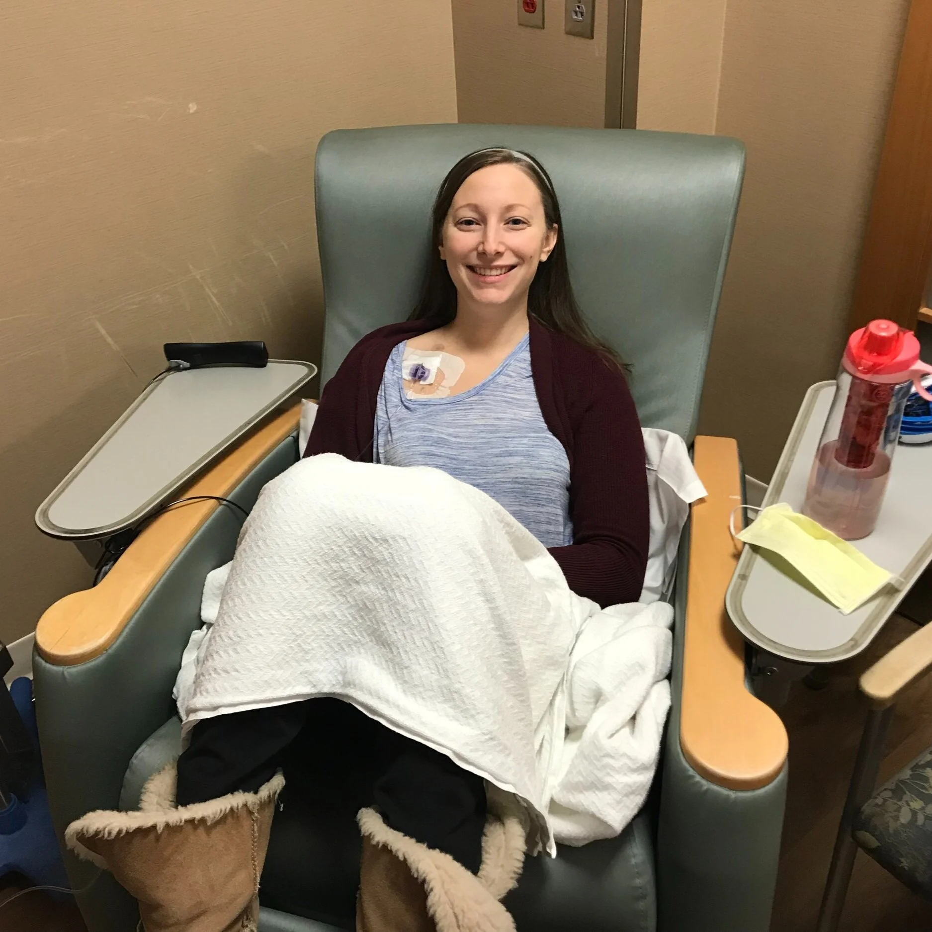 Except this time, my sister could come with. She hadn't been able to attend a round of chemo in over 10 months — partly due to having a baby and party because appointments had moved to Tuesdays, when she worked.