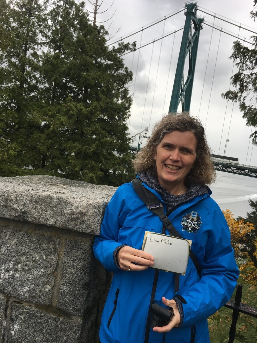 When Marcy mentioned they’d been to Stanley Park, I shared how I wanted to get a picture of the Lions Gate Bridge with me holding a picture of my dad’s Lions Gate handwritten sign. I’d brought it with, just in case.